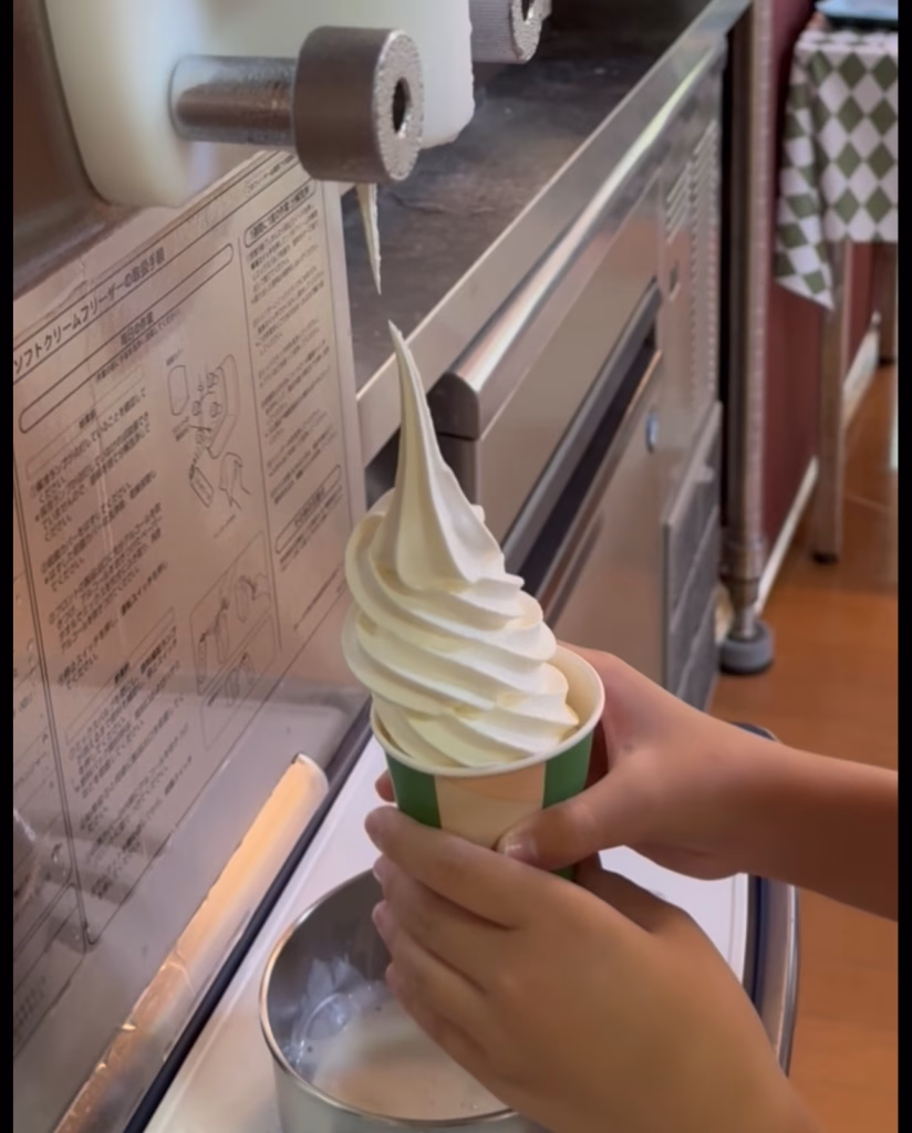 銭湯あがりで牛乳…ではなくソフトクリームをチョイスする娘。