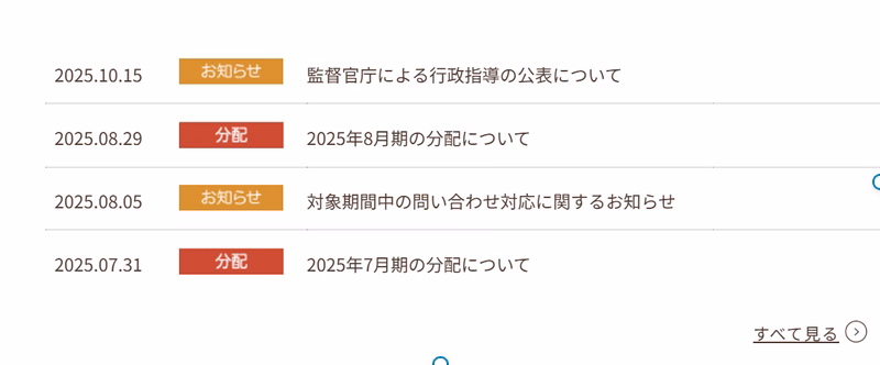 確かに…9月末の分配報告が無いようですね。