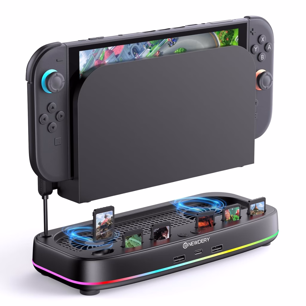 熱を持ちやすいSwitch2との相性は抜群、純正Dockの下における冷却ファン。